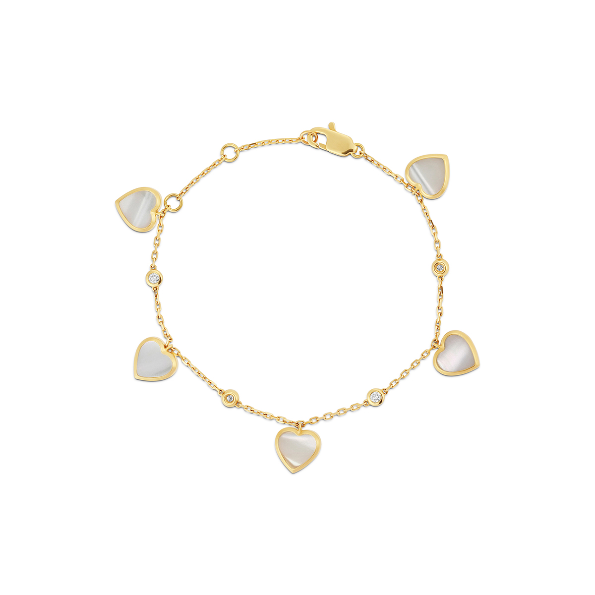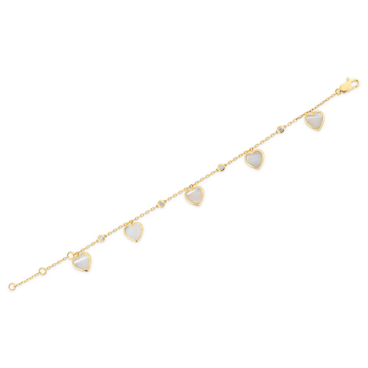 Design: Five station heart charms on an adjustable fine-link chain for a perfect fit.