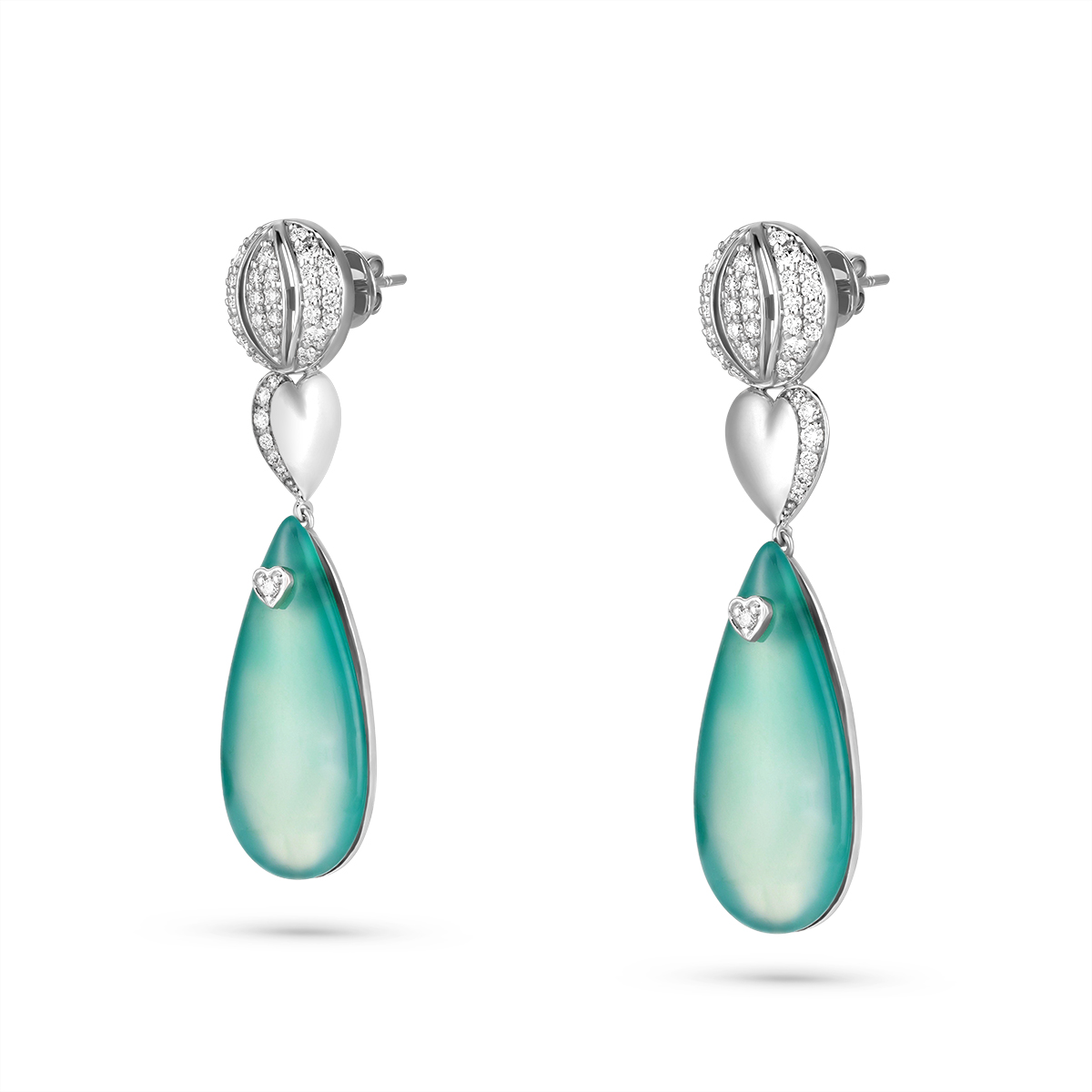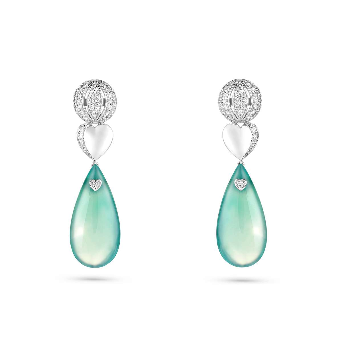 A celestial compression of eternal love, where Mayra’s signature globe and heart intertwine. From their embrace, a Simi precious teardrop descends, a silent, pendulum-sway of profound emotion, at once bold as a vow and tender as a first kiss.