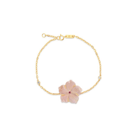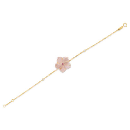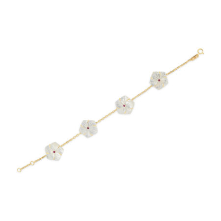 Three Arabian Jazmine flowers, aligned with gentle symmetry, grace this barbell bracelet. Each pearly bloom reflects the Damascene Jaz collection’s harmony of heritage and modern elegance, creating a statement of refined floral beauty.